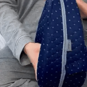 The Knee Pillow works by keeping your legs properly separated while you sleep, preventing your top leg from dropping and twisting your spine.